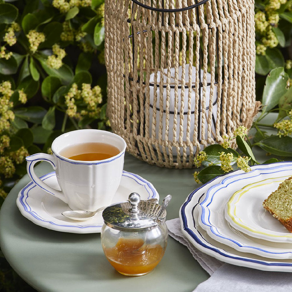 Enjoy a well-deserved coffee break with Paradis Bleu coffee cups and saucers. The earthenware will keep your drink warm, allowing you to savor a cozy moment in style for longer.