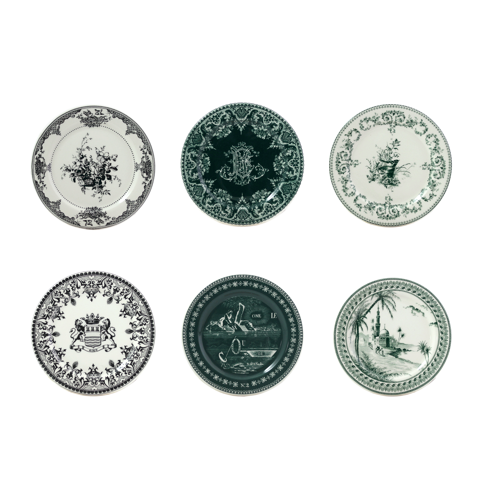 The era of uniformity is over; now it's all about the mismatched table! With a style that's both vintage and refined, Les Dépareillées Green creates an unusual and unique table setting. The major themes of the Faïencerie de Gien are revisited (floral, animal, themed plates, exotic landscapes, and coats of arms), telling the story of its famous 19th-century designs.