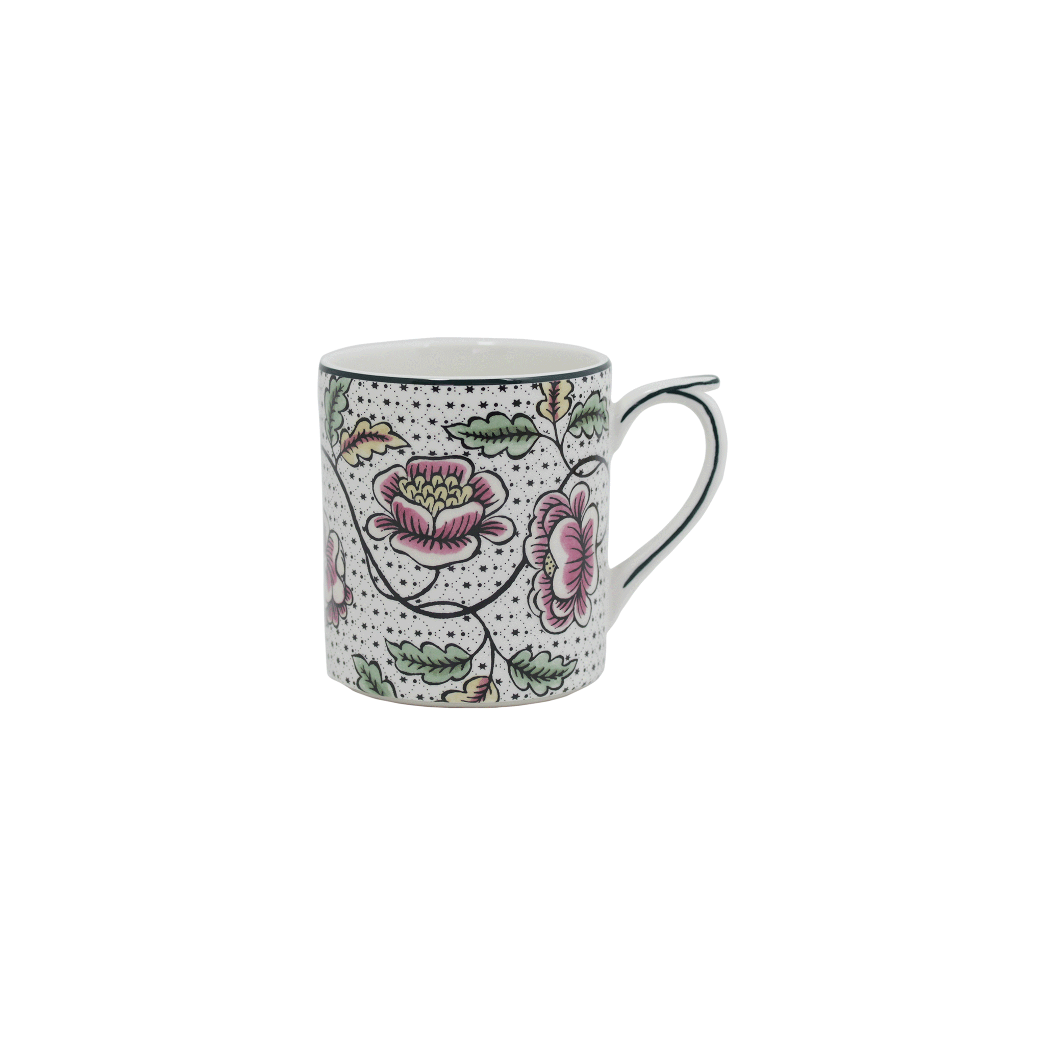 A perfect collectible, gift, or treat for yourself, this beautiful fine earthenware mug is ideal for all your hot beverages. Repurpose it as a pencil holder for your desk or as a makeup container for the bathroom. It comes in an elegant gift box with a hand-painted rim.