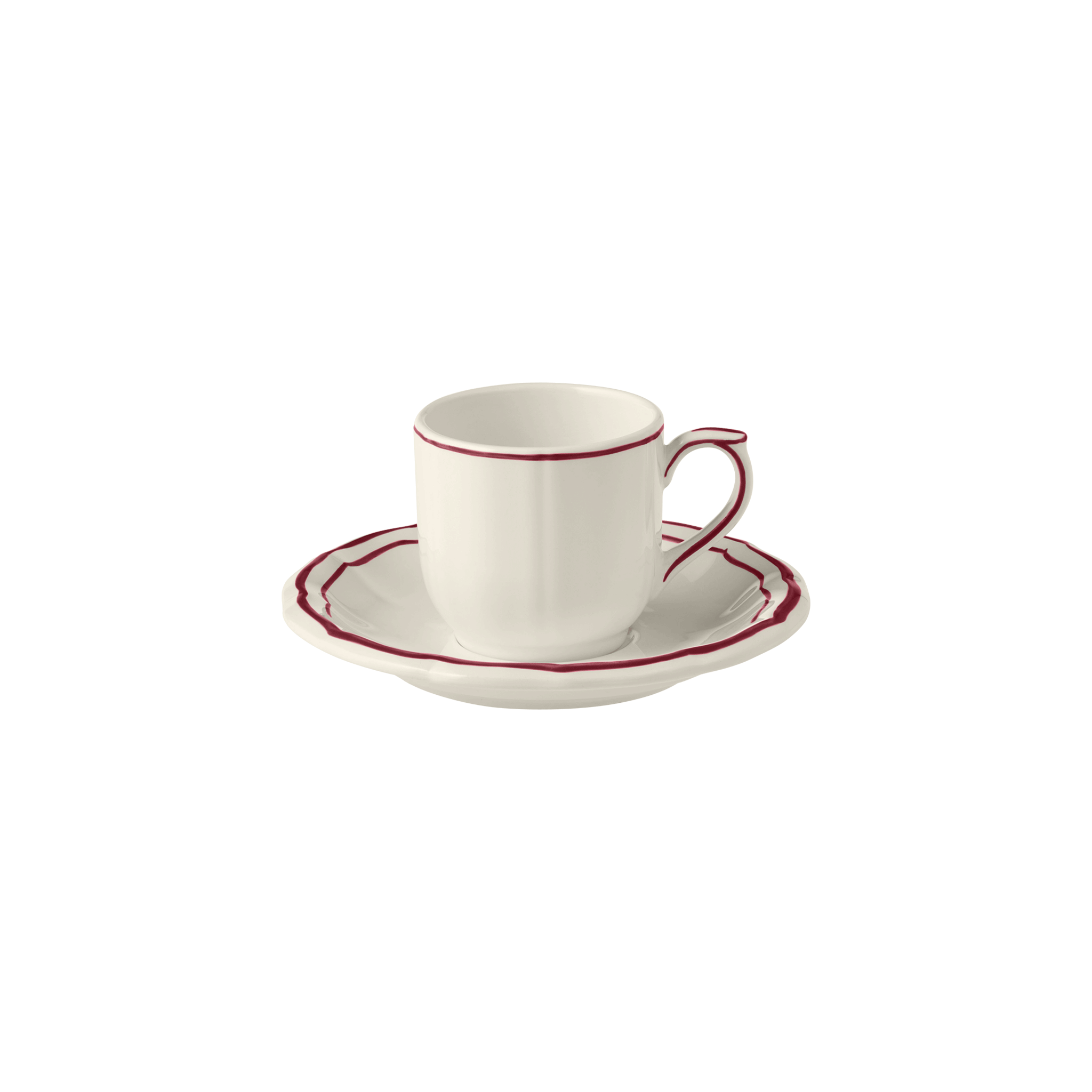 Enjoy your coffee break in style with the Filet Burgundy coffee cups and saucers. Delicately colored, they will complement many tableware sets from the Faïencerie de Gien.