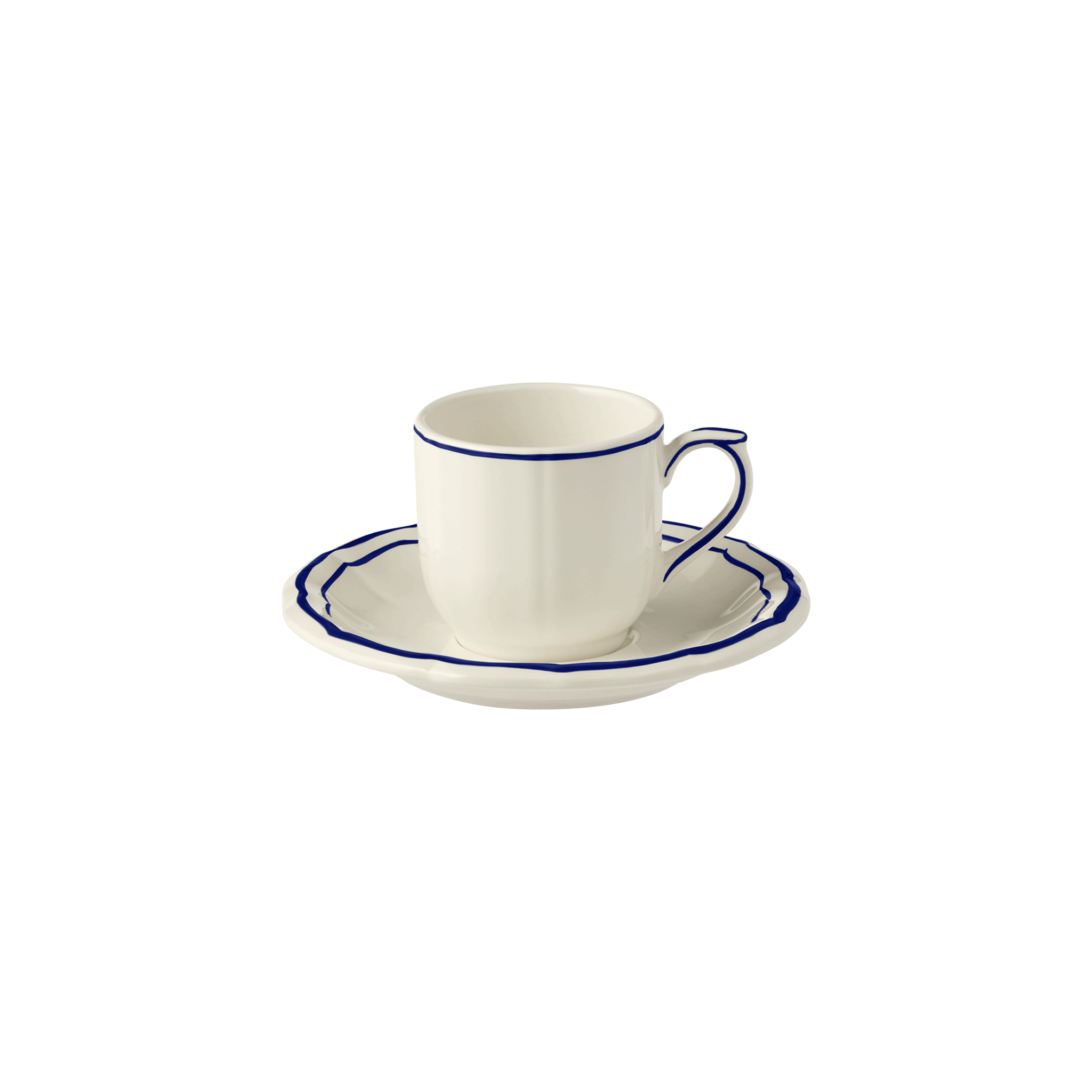 Enjoy your coffee break in style with the Filet Cobalt coffee cups and saucers. Delicately colored, they will coordinate with many tableware sets from the Gien pottery factory.