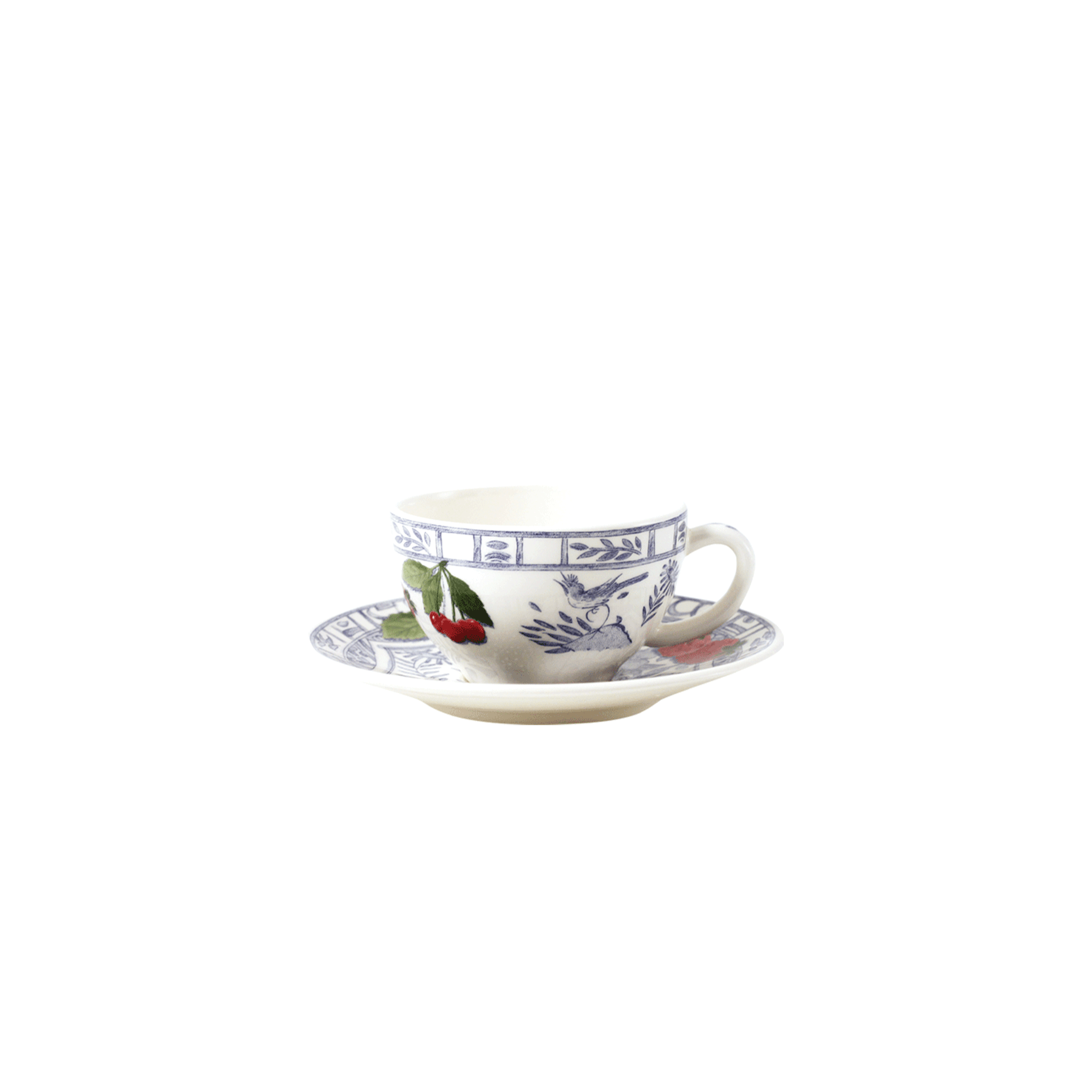 Set of 2 tea cups & saucers - Oiseau Bleu Fruits