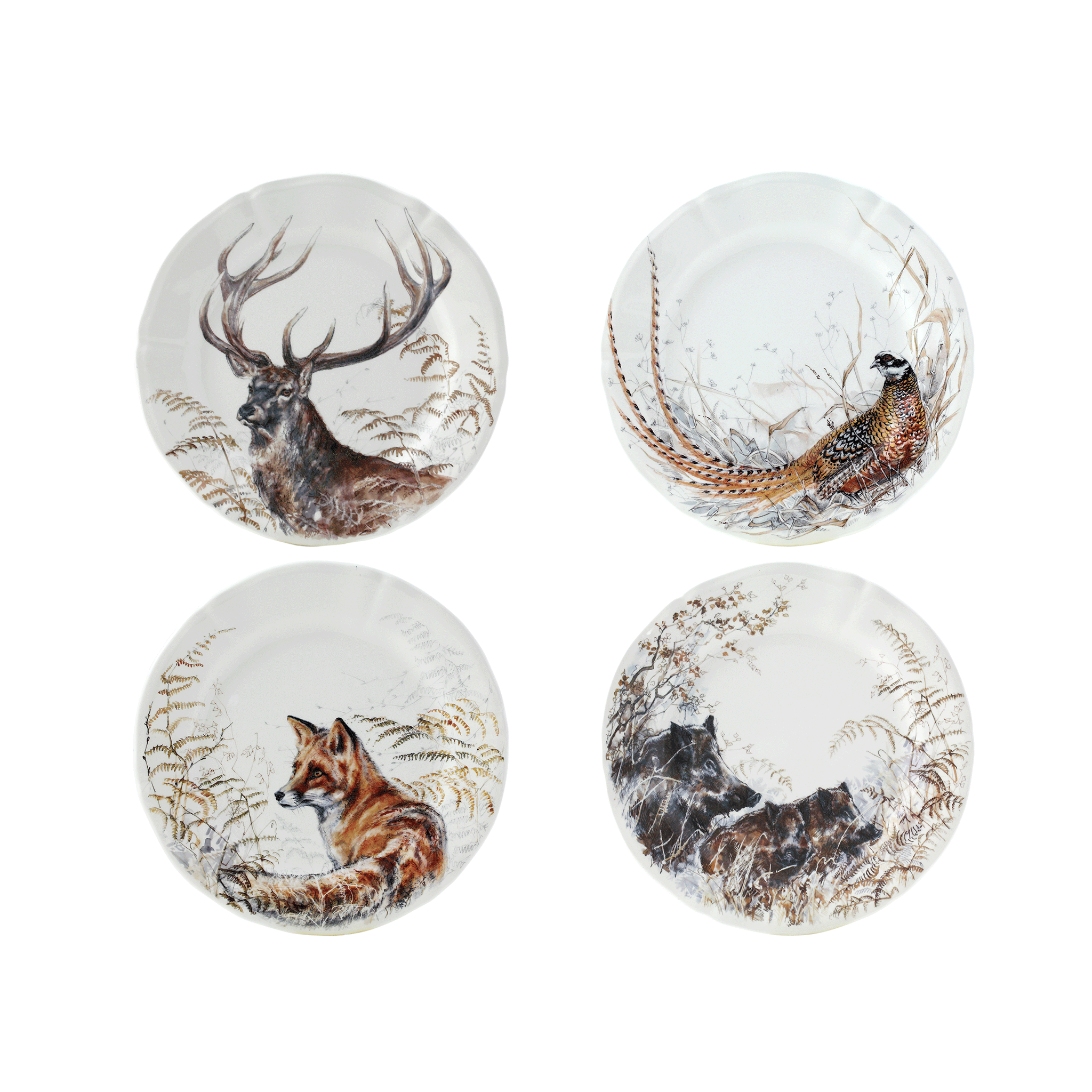 Set of 4 assorted dessert plates Game - Sologne