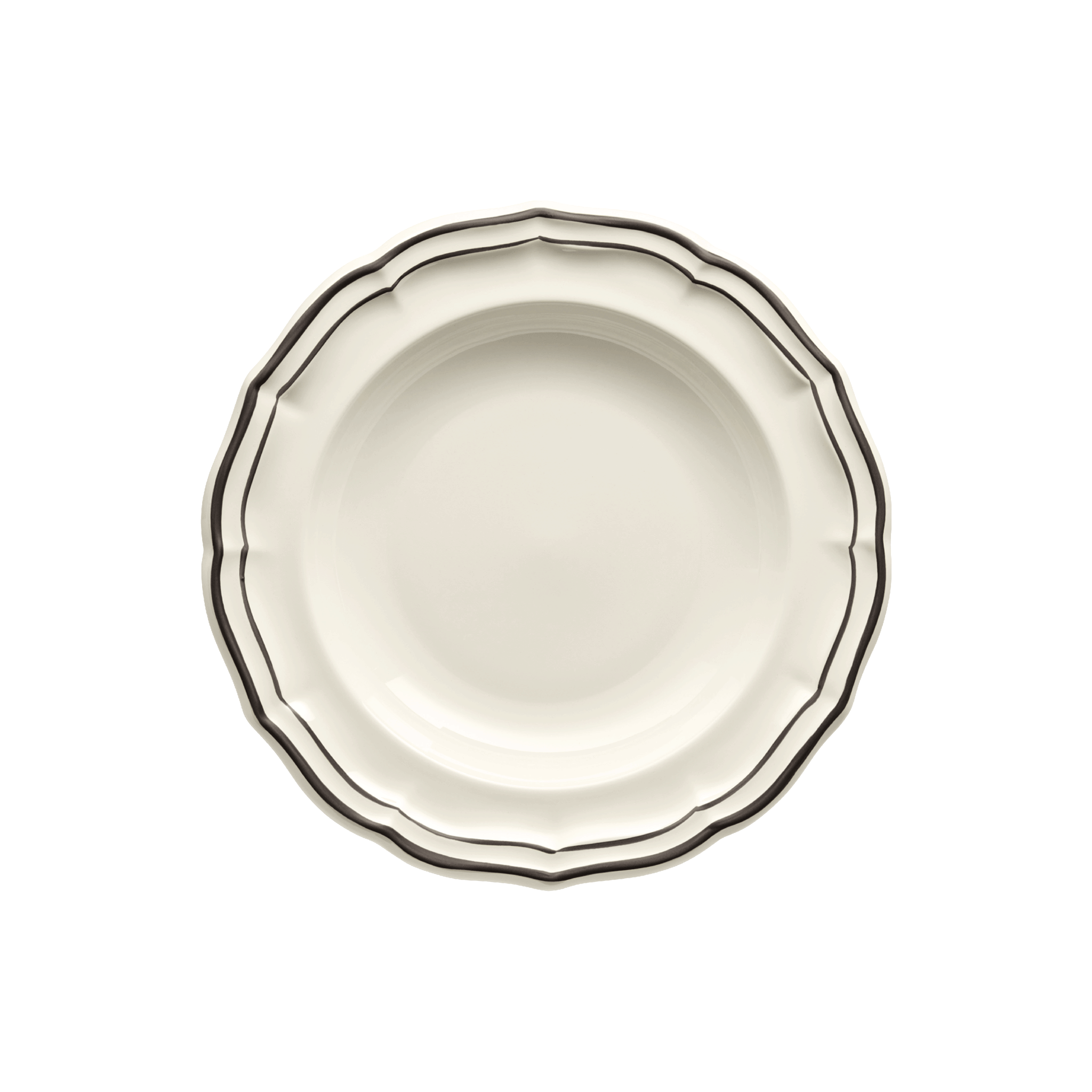 Salads, soups, desserts... These soup plates will elegantly and warmly accommodate all your culinary creations. Delight your guests at your gatherings, or simply treat yourself every day. With their delicate hand-applied rims, the Filet Midnight soup plates will perfectly complement many Gien collections.