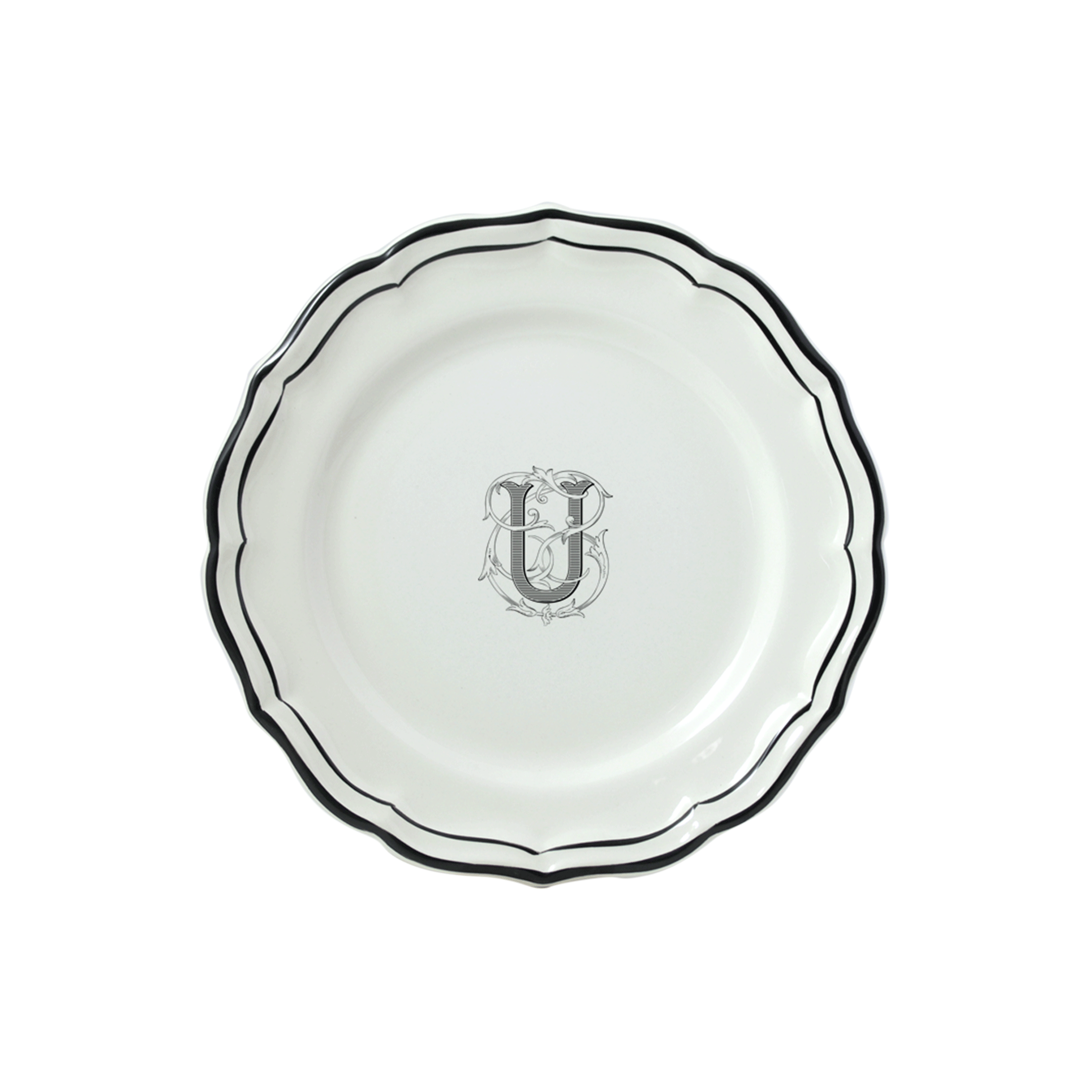 Set of 6 dessert plates U - Filet Midnight Monogram