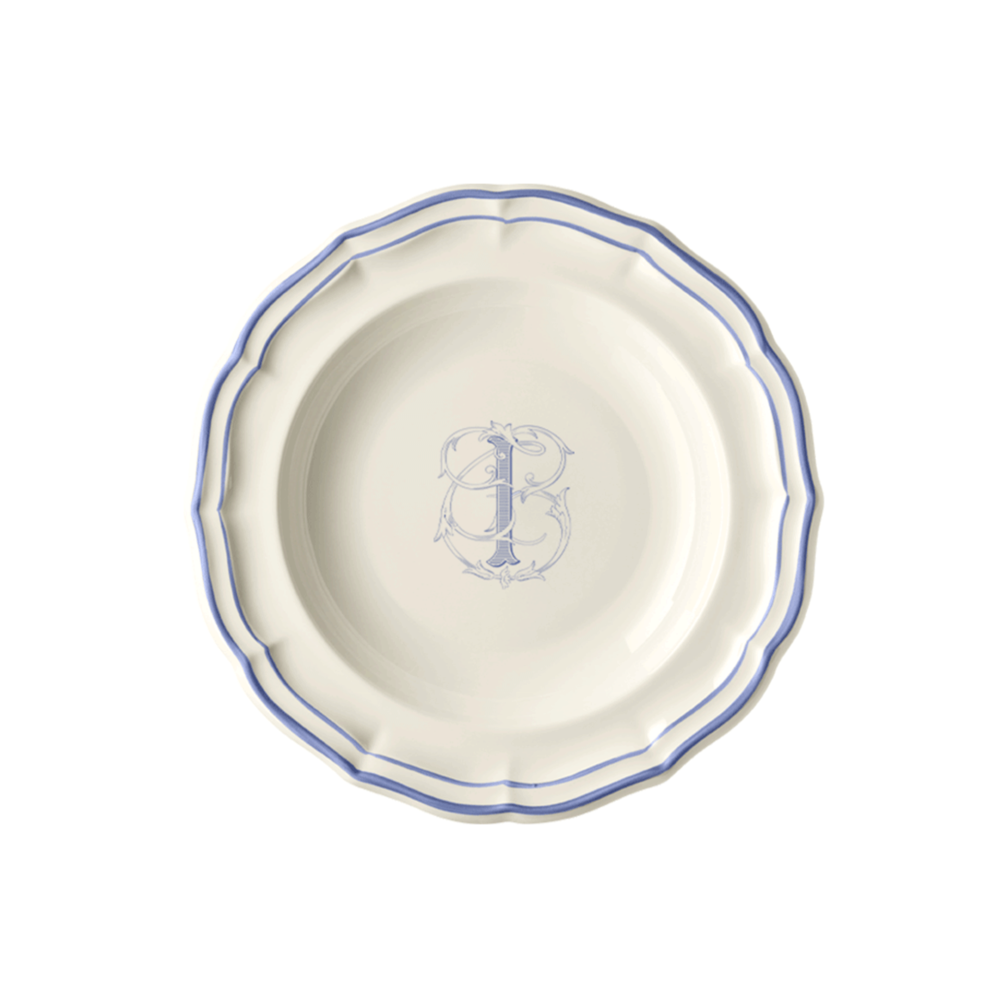 Set of 6 rim soup plates I- Filet Blue Monogram