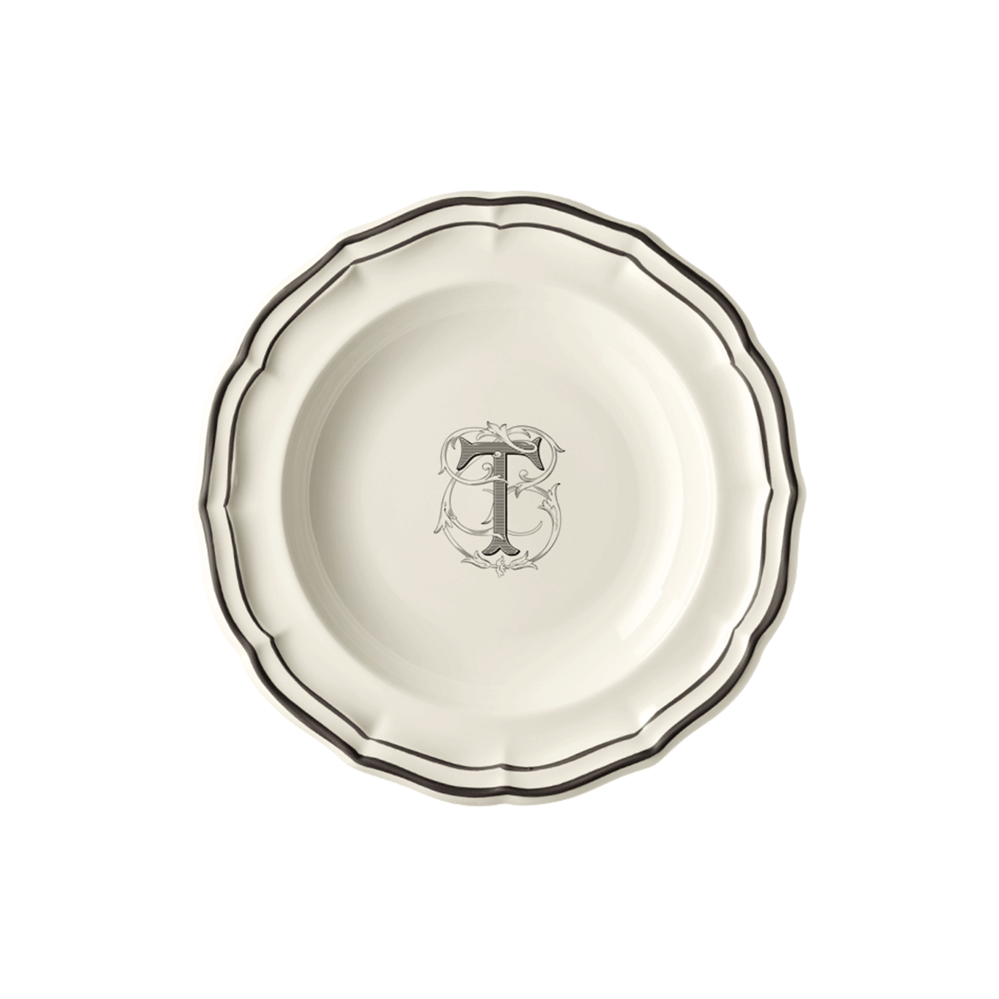 Set of 6 rim soup plates T - Filet Midnight Monogram