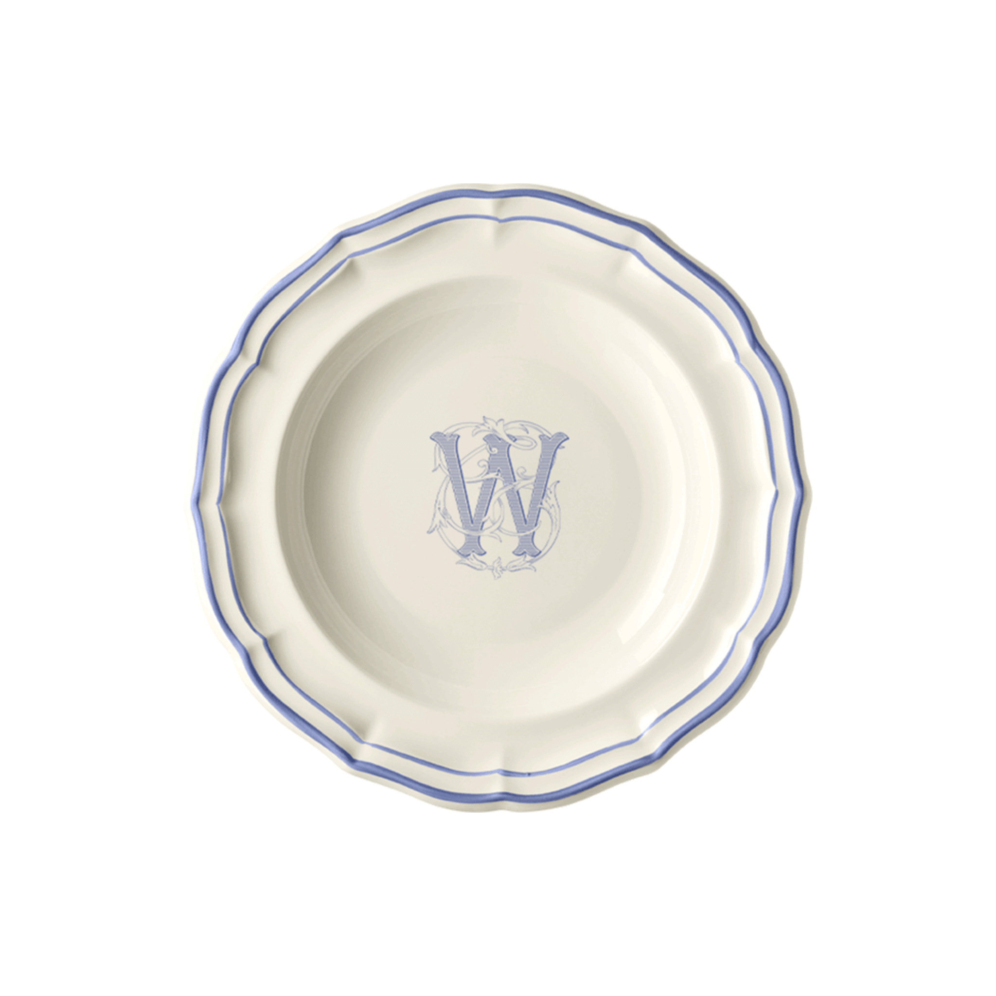 Set of 6 rim soup plates W - Filet Blue Monogram