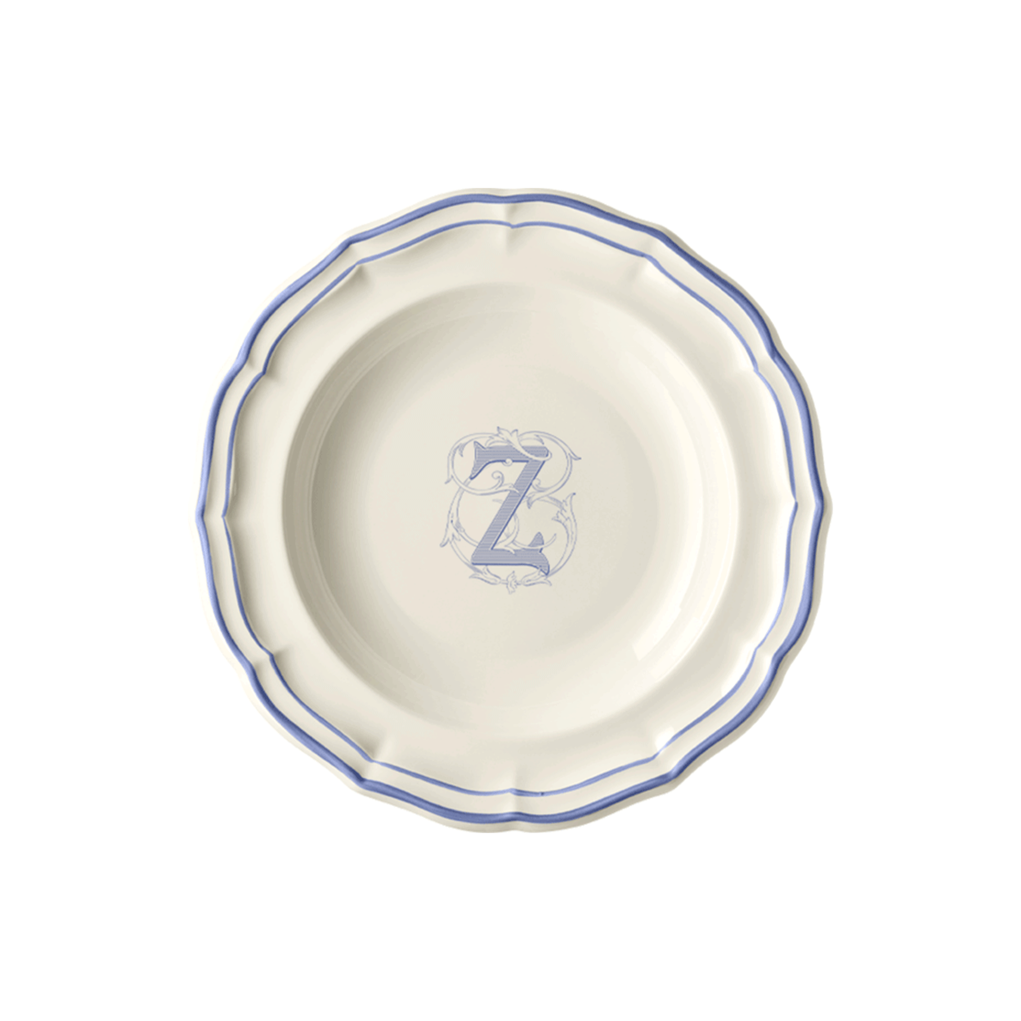 Set of 6 rim soup plates Z - Filet Blue Monogram