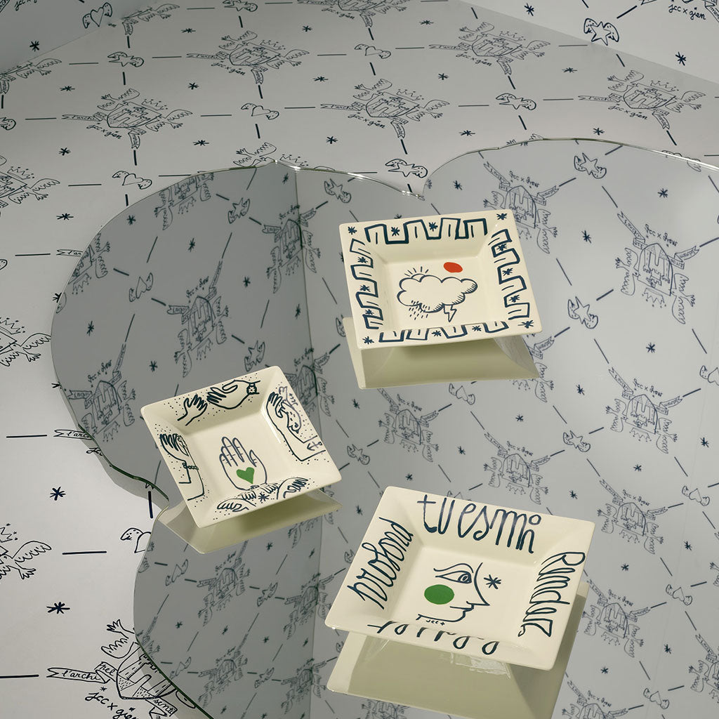 Sa collaboration avec la Faïencerie de Gien lui permet de déployer son univers, nourri par l’enfance,