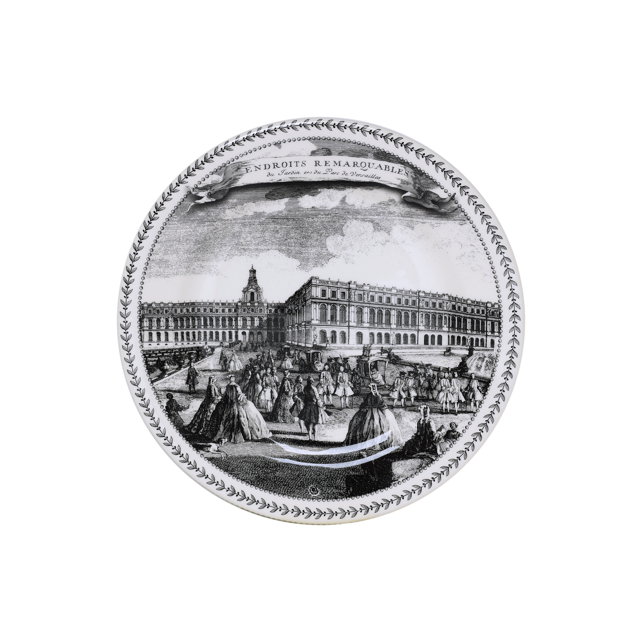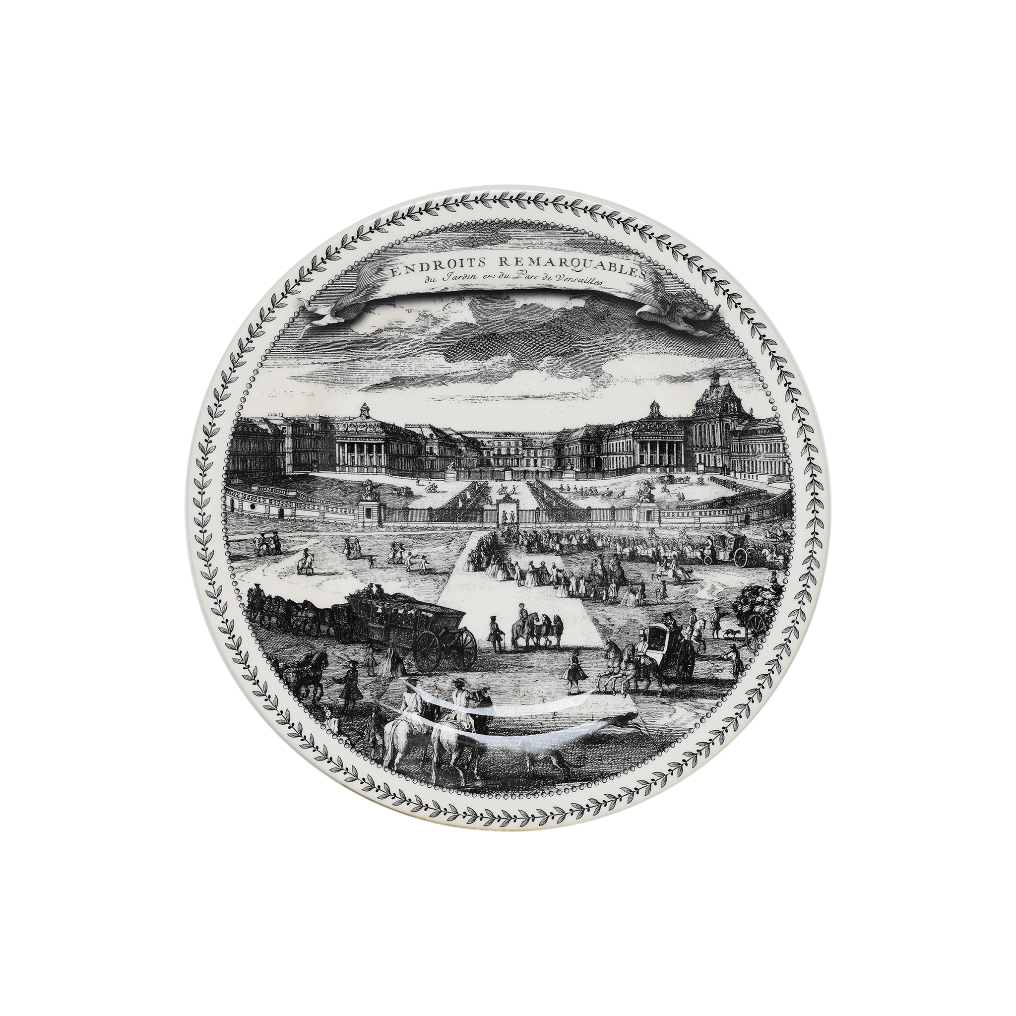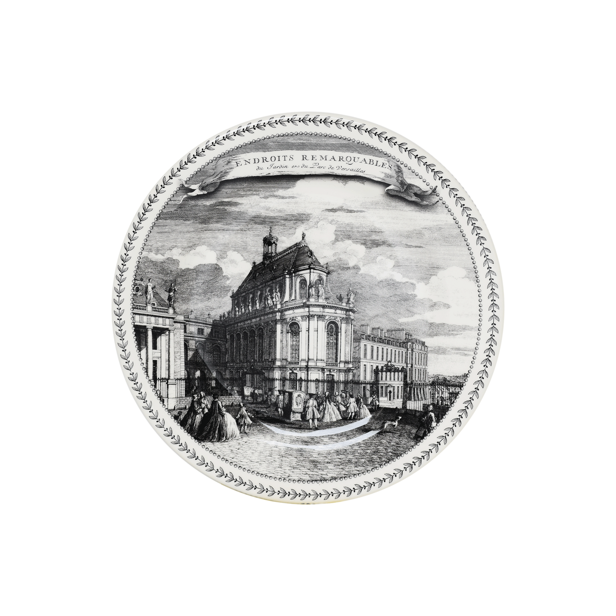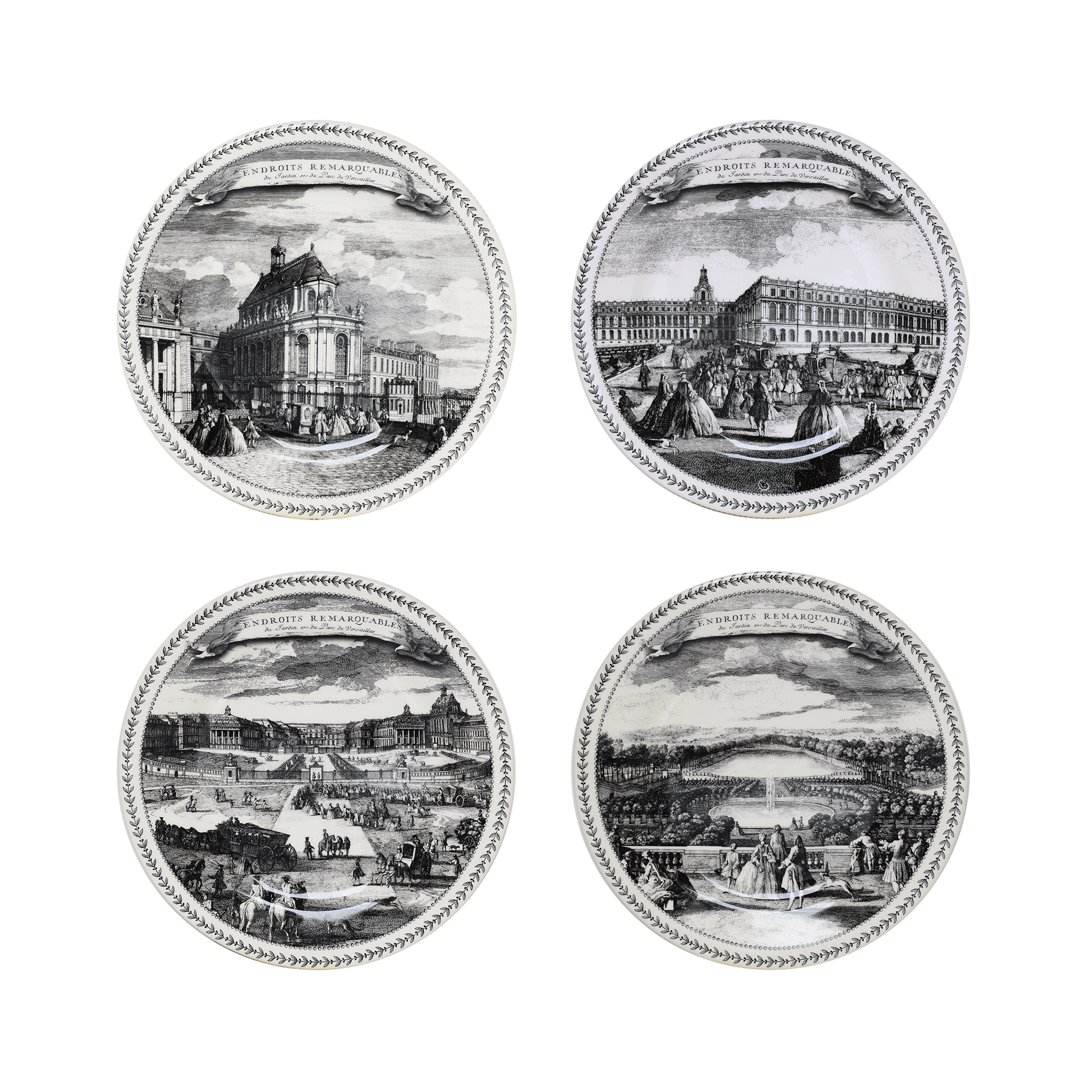 Inspirée de gravures anciennes de Jacques Rigaud réalisées sous le règne de Louis XV, la série Endroits Remarquables présente le Château et les jardins de Versailles sous différentes vues : la façade depuis les jardins, la chapelle, l'Orangerie et la place d'Armes.