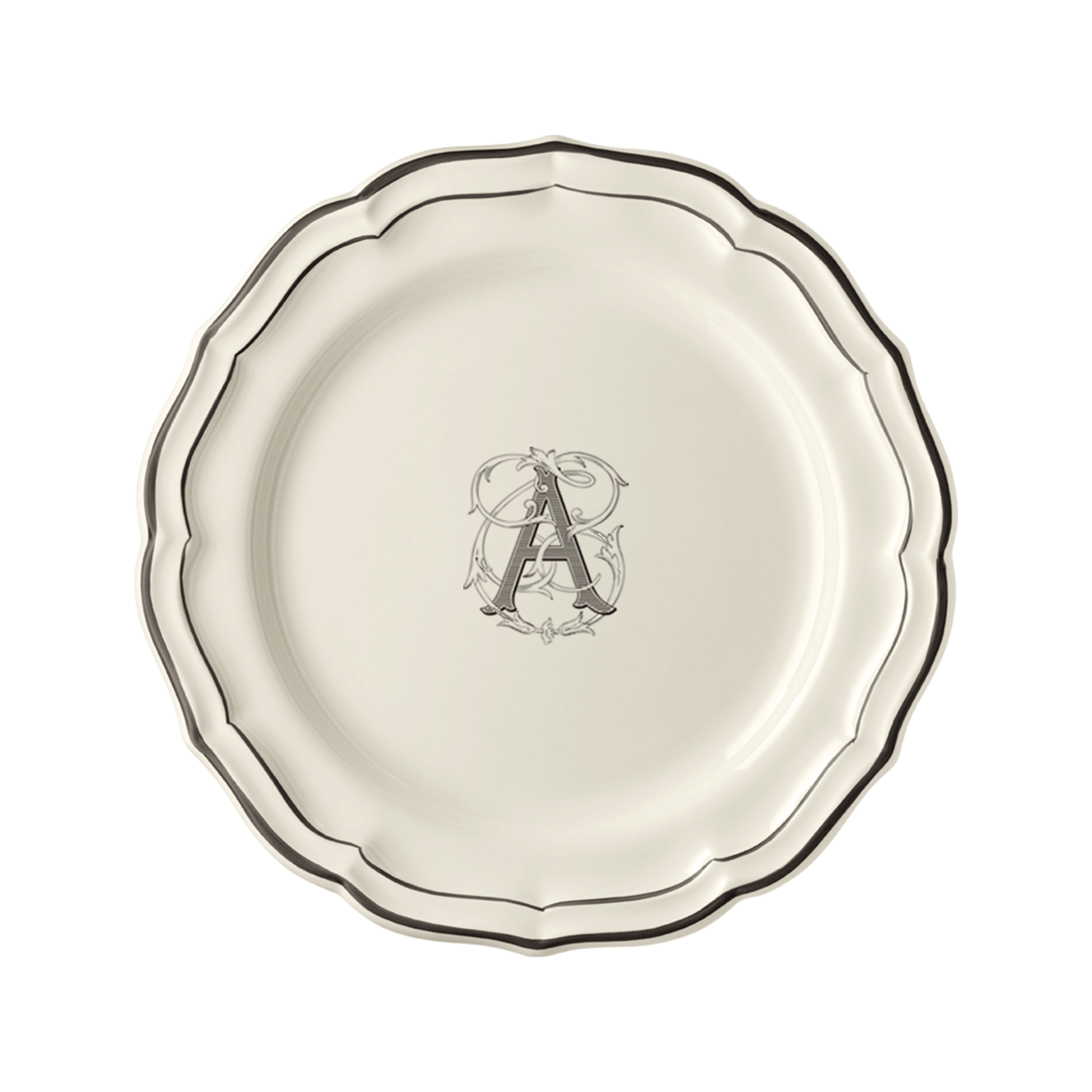 Coffret de 6 assiettes plates A - Filet Manganèse Monogrammé