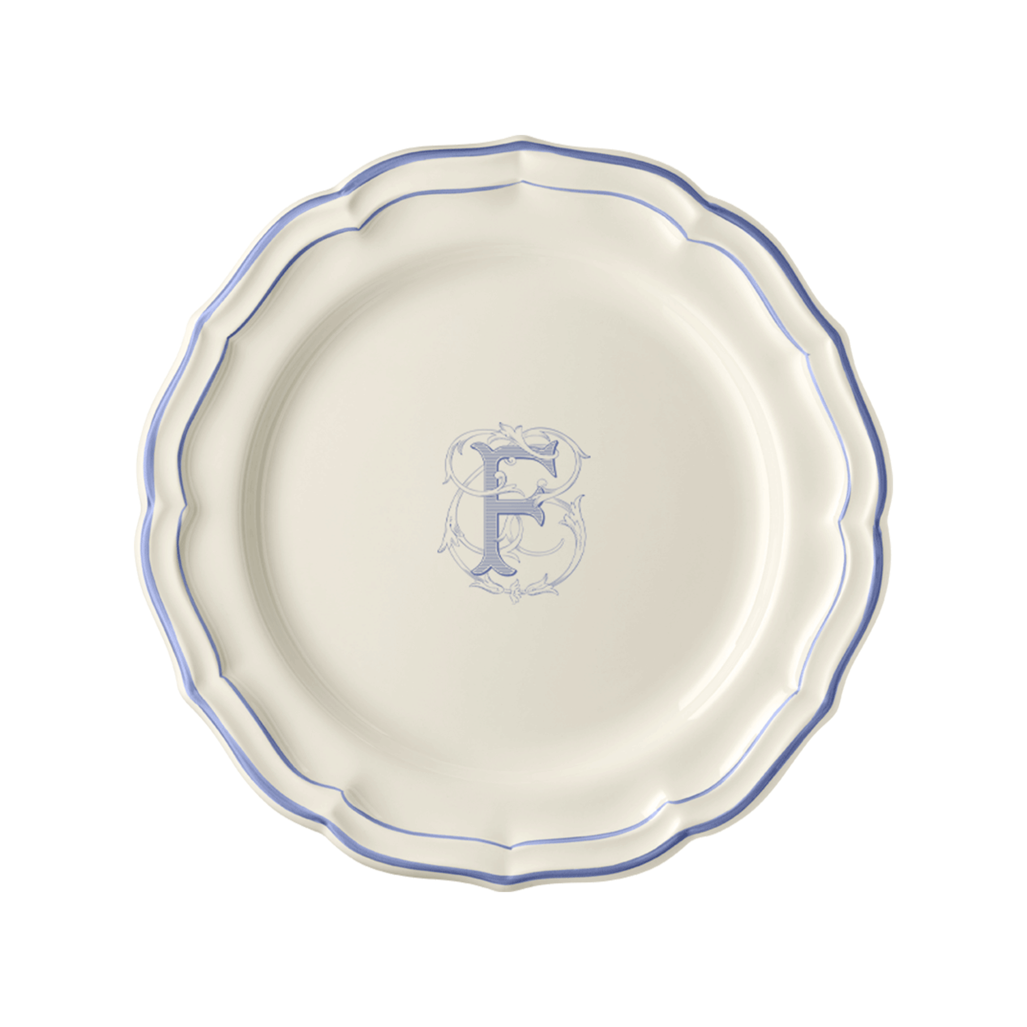 Coffret de 6 assiettes plates F - Filet Bleu Monogrammé