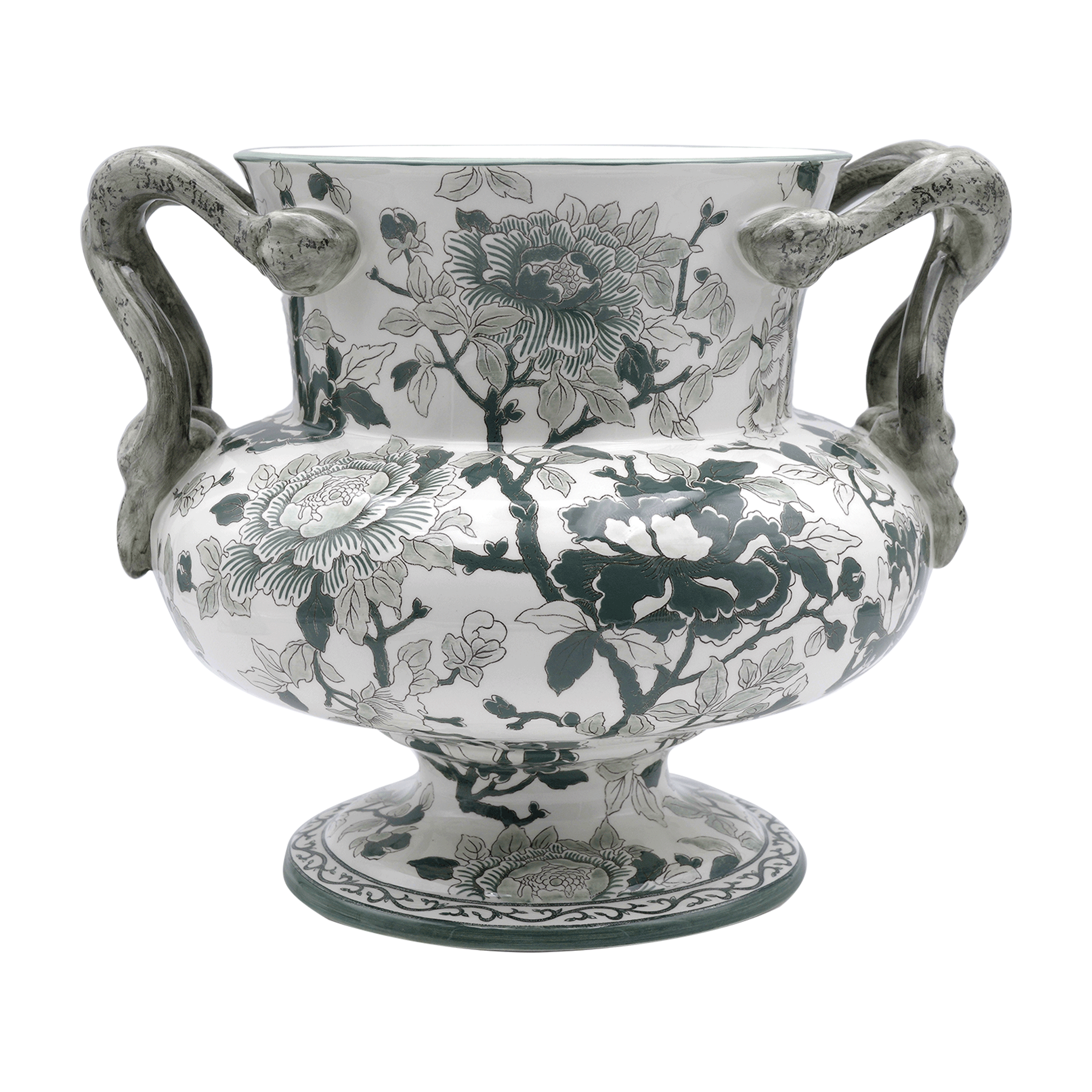 Vase Faenza anses Serpent, grand modèle - Pivoines Vertes
